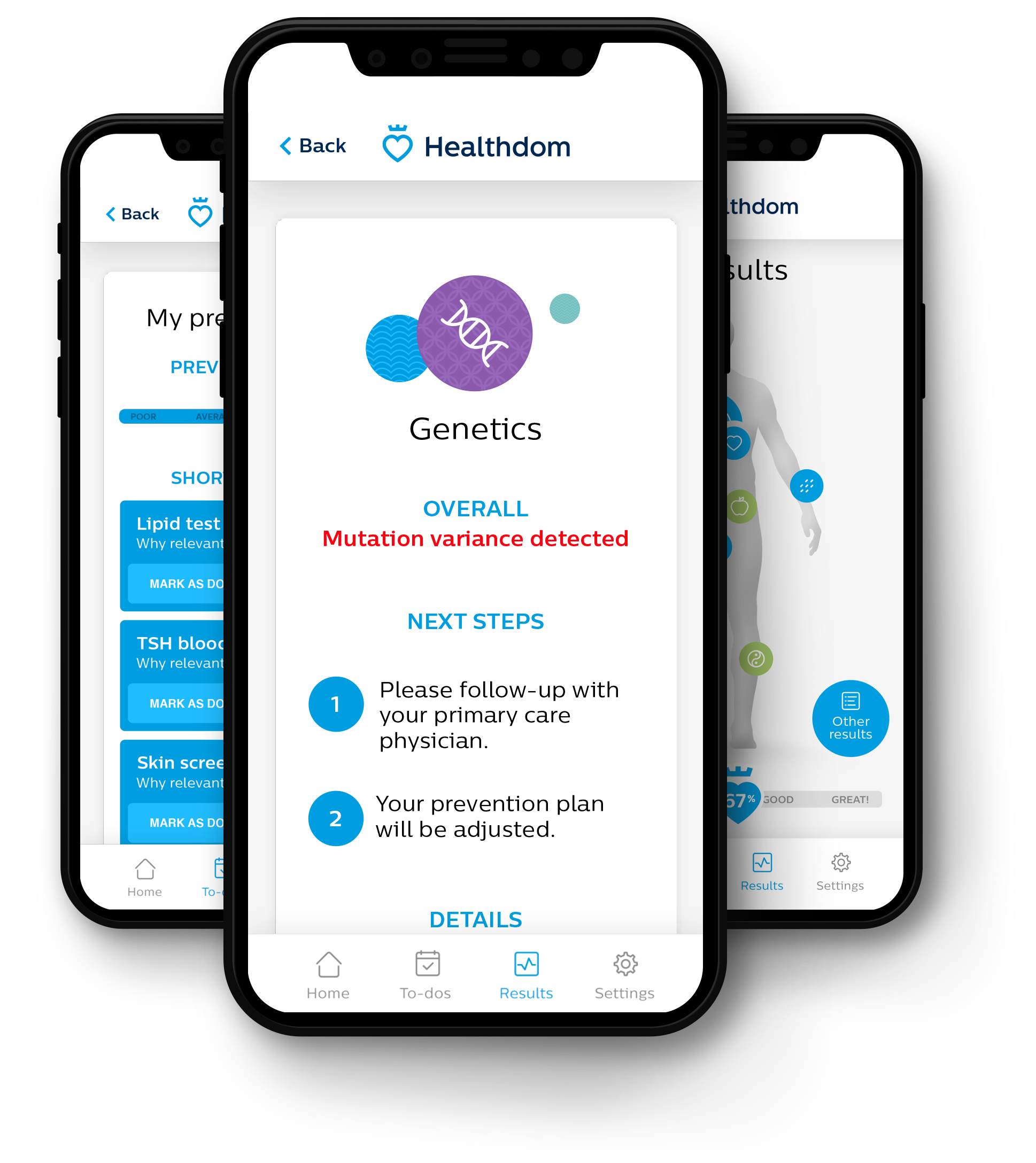 Healthdom helps prevent illness by providing you with personalized screenings and check-up plans based on your DNA, wearables, lifestyle and medical history.