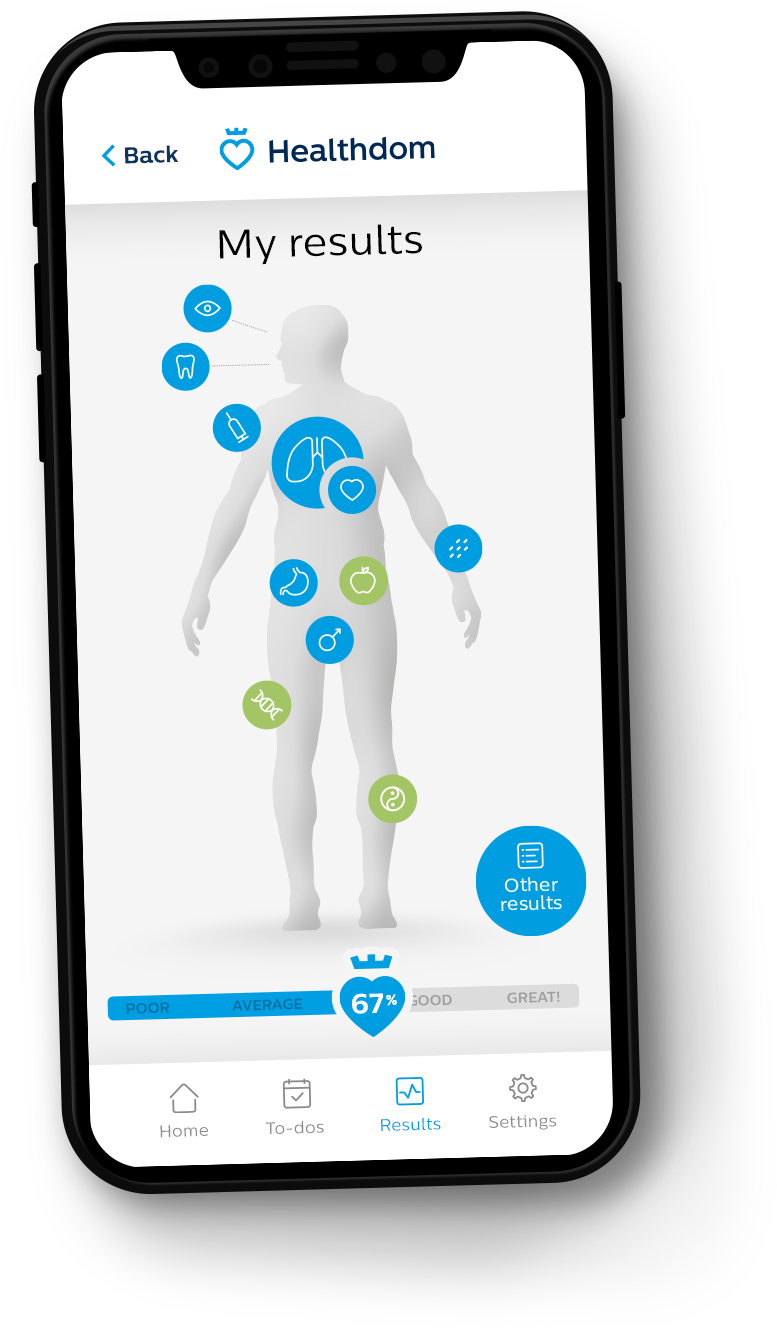 Your health is determined by various factors, such as genetics, lifestyle, medical care, and environment. Healthdom gathers data from all these spheres to produce a sophisticated action plan, which is specifically designed to help you to stay healthy.